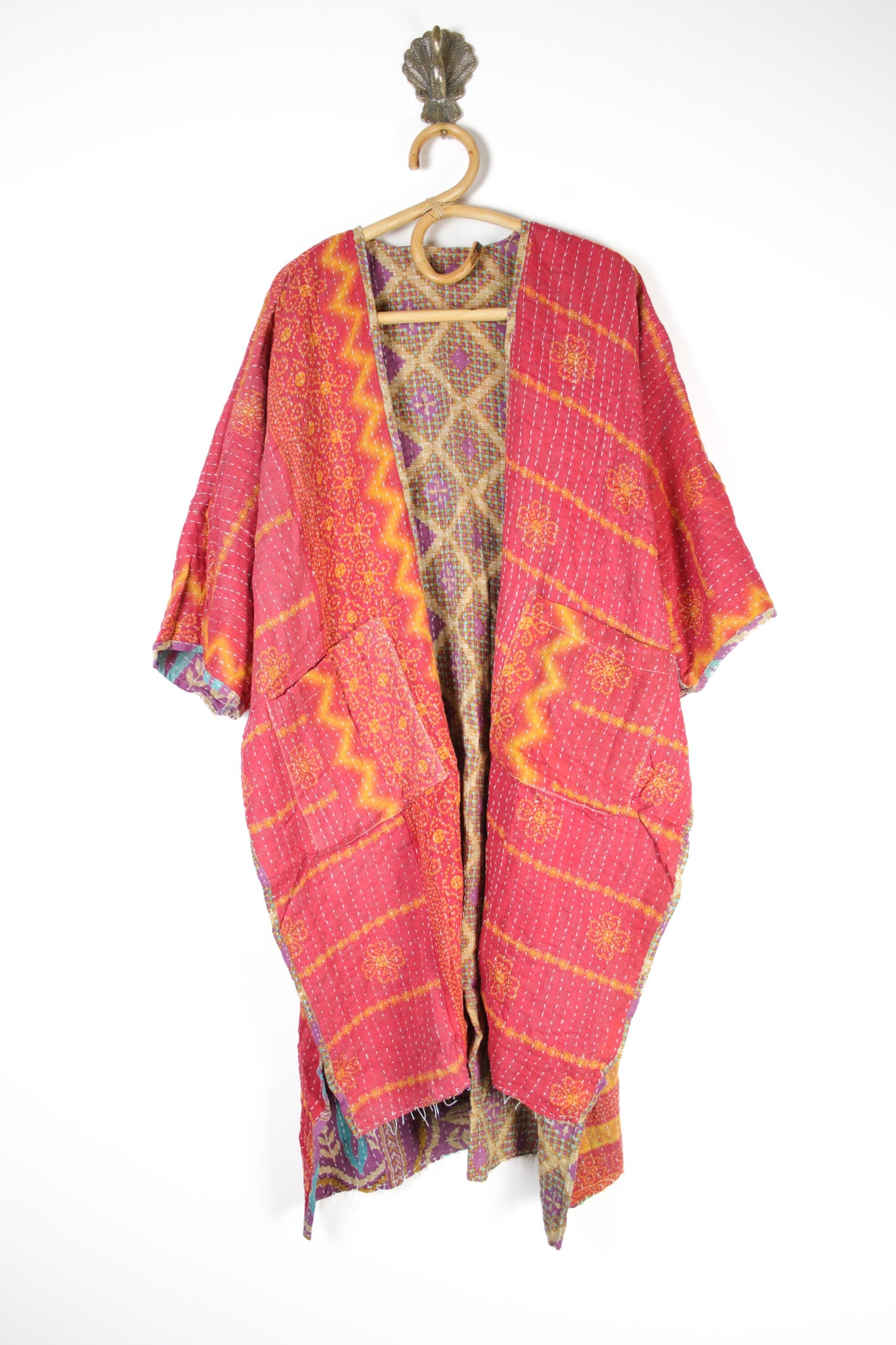 Our best-selling Kantha Ruanas are fully reversible with big, roomy pockets inside and out! Crafted from the softest 3-layer Indian cotton kantha fabrics, each kimono is a one-of-a-kind piece, the perfect layering piece for that effortless bohemian touch.